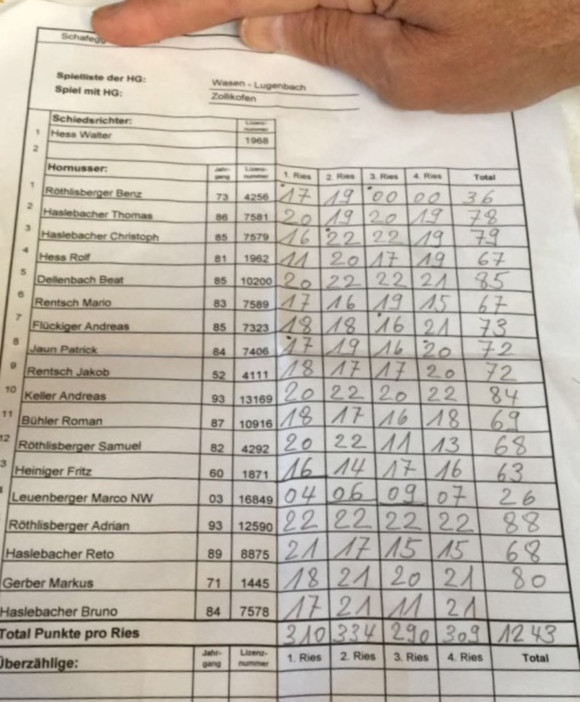 Bei schönem Herbstwetter nahm die A-Mannschaft am vergangenen Samstag am Schafegghornussen in Reutenen teil. Im Ries musste man sich zwei Nummern notieren lassen. Bei den Einzelschlägern belegte Adrian Röthlisberger und Beat Dellebach die Ränge 2 und 3. Ein herzliches Dankeschön den Organisatoren dieses Anlasses. Die Infrastrucktur sowie die Verpflegung waren top!